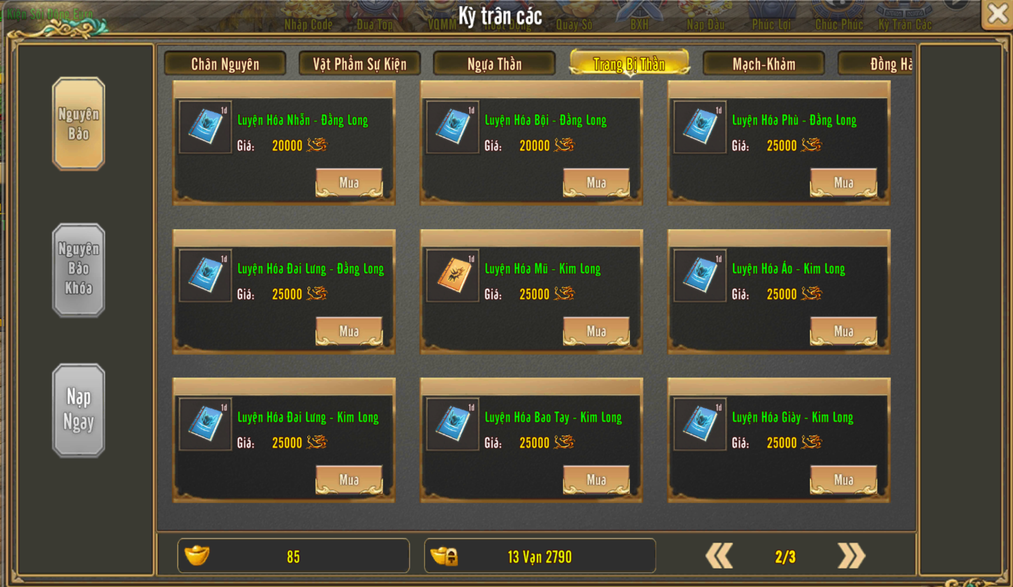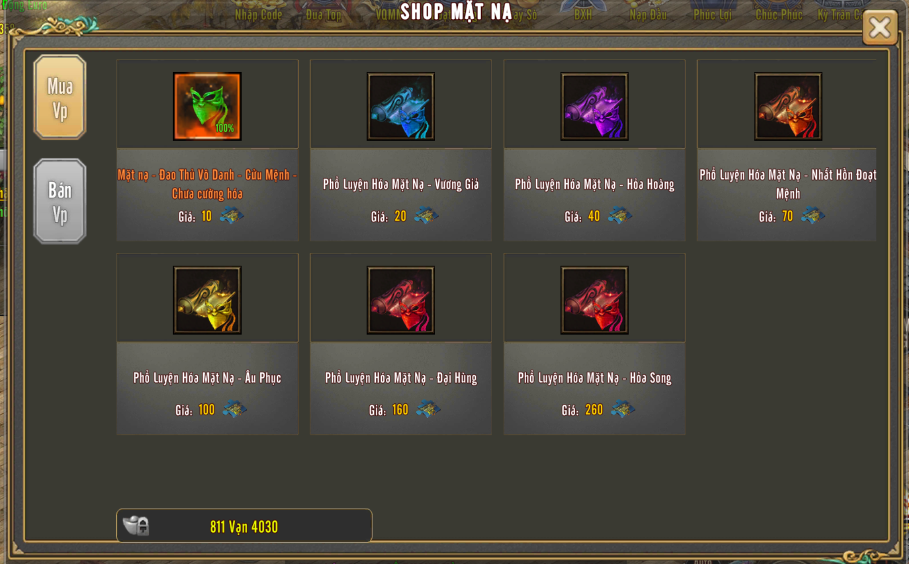🔰 Tiền Du Long. 🔰 Nhận Được từ Sự Kiện. Dùng để mua vật phẩm danh vọng du long tại "NPC Long Ngũ Thái Gia". |
