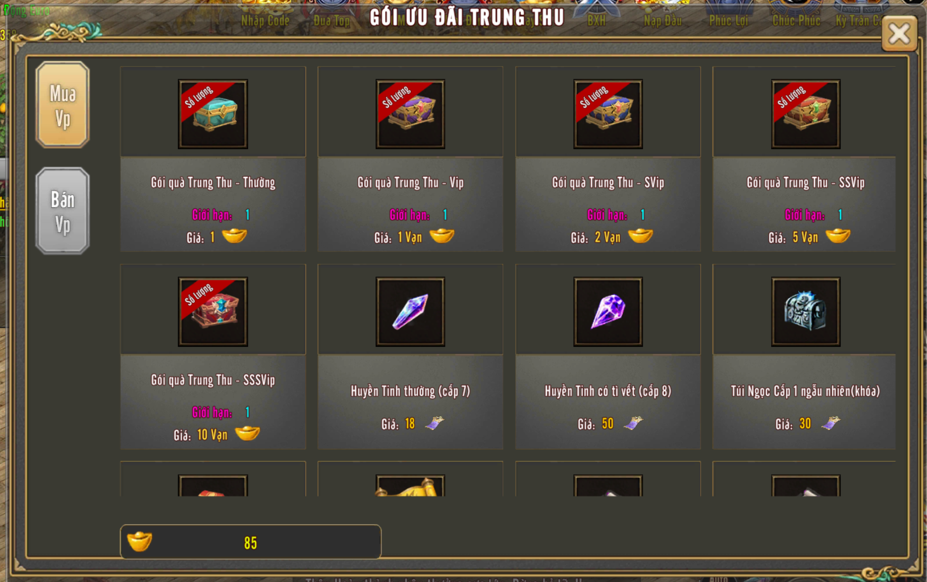 🔰 “Trung”, “Thu”, “Đoàn”, “Viên”. 🔰 Đánh Quái map 60 trở lên tỉ lệ nhận “Trung”, “Thu”, “Đoàn”, “Viên”. Thu nhập đủ đến NPC Cổ Phong Hà đổi nhận sử dụng nhiều EXP |